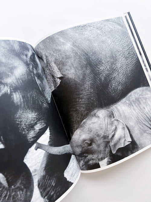 デュマはこれまで、労働を終えた馬や、休息する狼といった動物たちのポートレートを通じて、人間社会と動物との関係性や、彼らが放つ特有の静寂を捉え続けてきました。本作では、父のハーフサイズカメラで撮影した象の写真と、病によって認識や筆致が変化していく中で父が描いたスケッチを収録しています。デュマが幼少期に父と通ったロッテルダムの動物園での記憶と、父が晩年、アルツハイマー病を患ってから再び共にそこを訪れた際の体験が描かれ、作者のキャリアの中でも特に個人的かつ親密な記憶に根差した写真集です。版元はオランダの〈Fw:Books〉、デザインは同出版社を主宰するデザイナー、ハンス・グレメン(Hans Gremmen)によるもの。