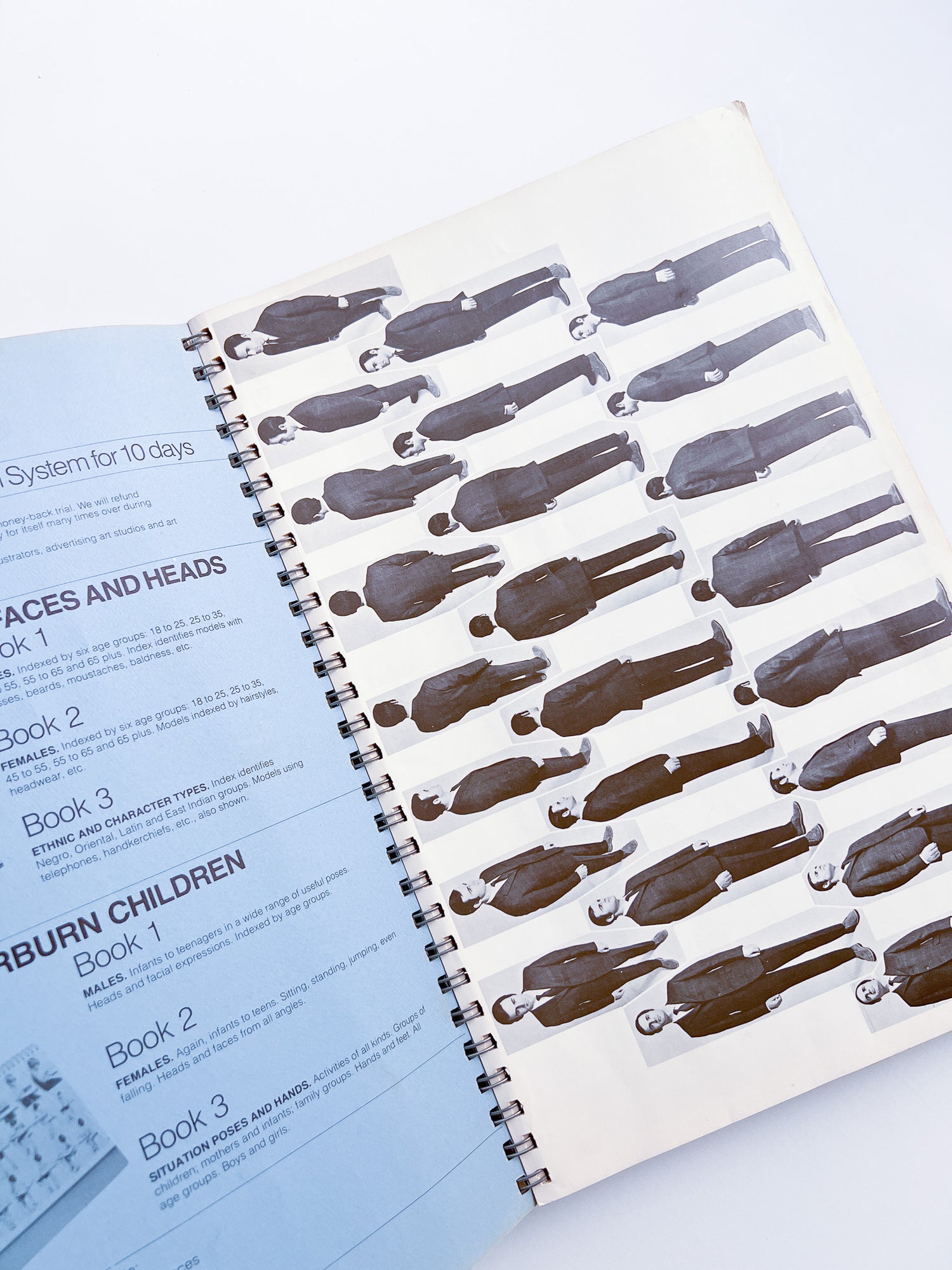 Part of the "Fairburn System of Visual References" series published in the 1970s. This volume is the Male edition of Set 1, which focuses on the human figure and hands. It captures a wide variety of movements—including standing, running, jumping, leaning, pulling, and pushing—covering virtually every pose required for professional practice. Includes examples of use at the beginning of the book.