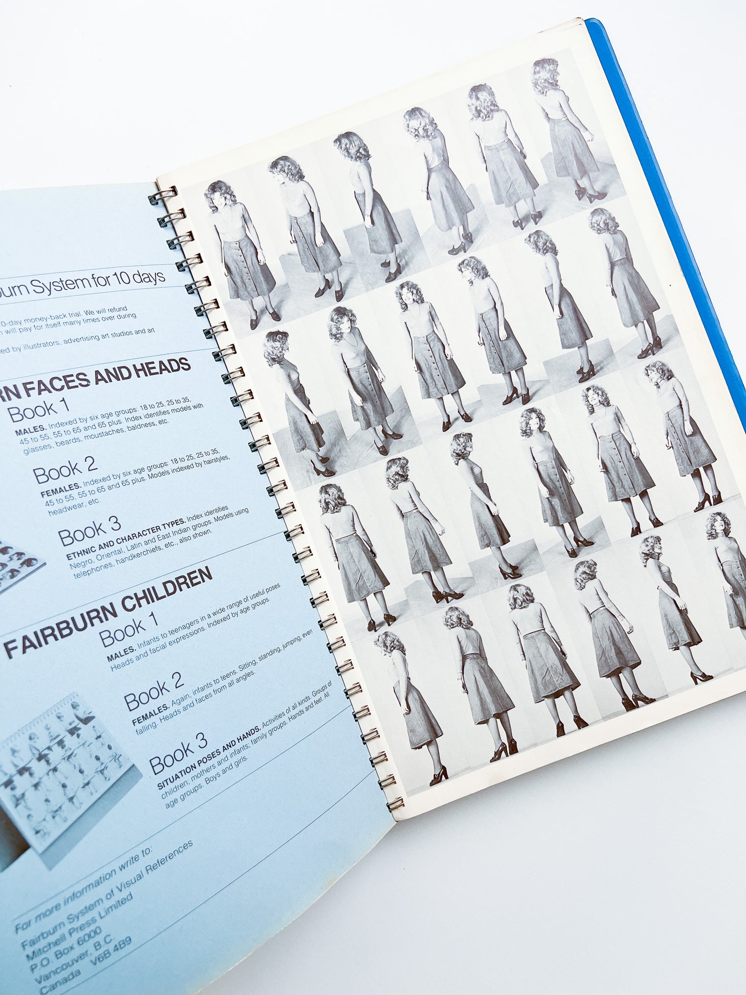 1970年代に発行されたポーズ集「Fairburn System of Visual References」シリーズの一冊。人物と手にフォーカスした「Set1」のうち、女性編である本書では、「跳ねる」「伸ばす」「曲げる」「物を運ぶ」「着替え」など、多岐にわたるアクティビティを23種のカテゴリーに分類し収録しています。 巻頭に作例つき。