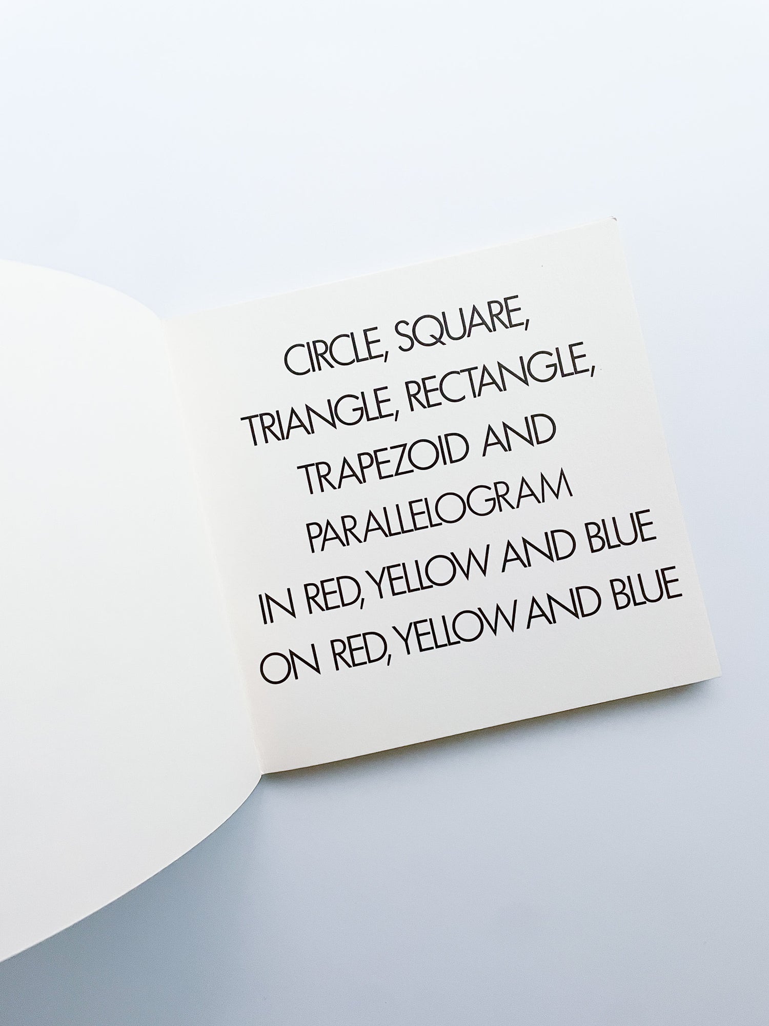 アーティスト、ソル・ルウィット(Sol LeWitt)の作品集。1979年に刊行された本作は、より民主的な形で自らのアイデアを流通させるために作家が重視した「アーティスト・ブック」というメディアにおいて、彼のシステム志向を明確に体現した重要な一冊です。 本書では、円・正方形・三角形・長方形・台形・平行四辺形の6つの図形を、赤・黄・青の三原色を用いて描き、同じく三原色の背景の上に順列組み合わせで展開されています。1979年に出版社「Harry N. Abrams」より刊行された初版、ソフトカバー。