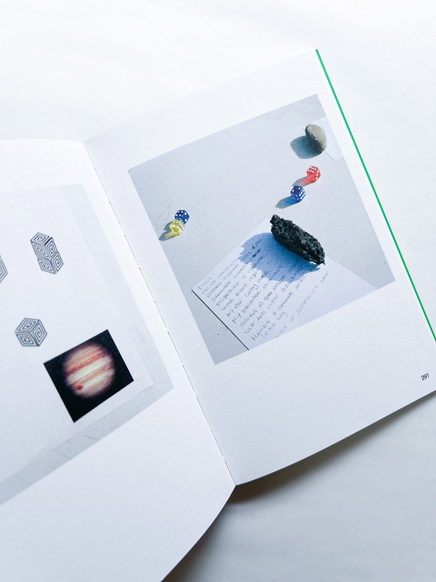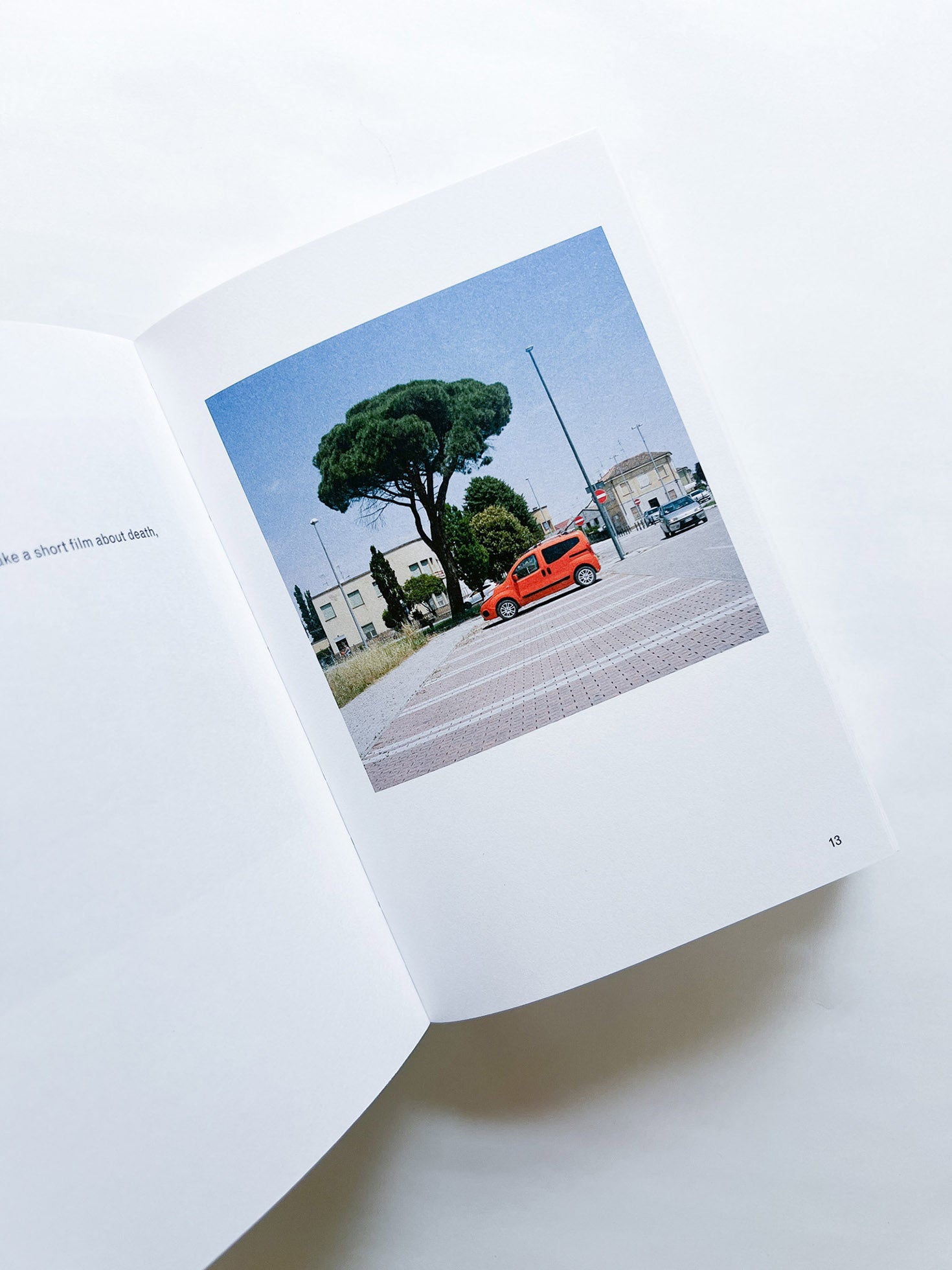 小説サイズのペーパーバック仕様の本書が魅せるのは、ボールを壊すパン屋との出会い、爆発する美術館の地下倉庫、建築家アルド・ロッシ(Aldo Rossi)による幸福についてのメモ、地球の中心、フォトグラファーであるグイド・グイディ(Guido Guidi)のガレージなど。その絵は一見シンプルであるが、メタファーや意味をもたらすような構図の才能が宿っている。編集者としての手腕も世界的に知られる作者が、多層的な繋ぎと慎重に組み立てられたシークエンスによって、作品への曖昧な意味づけを示唆し、終わりのない読書へと誘う。